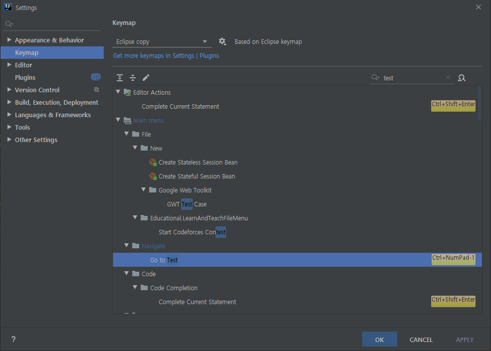 Test 코드 만들 때 사용하는 단축키이다. (이클립스 키맵핑하면 키설정이 사라진다)