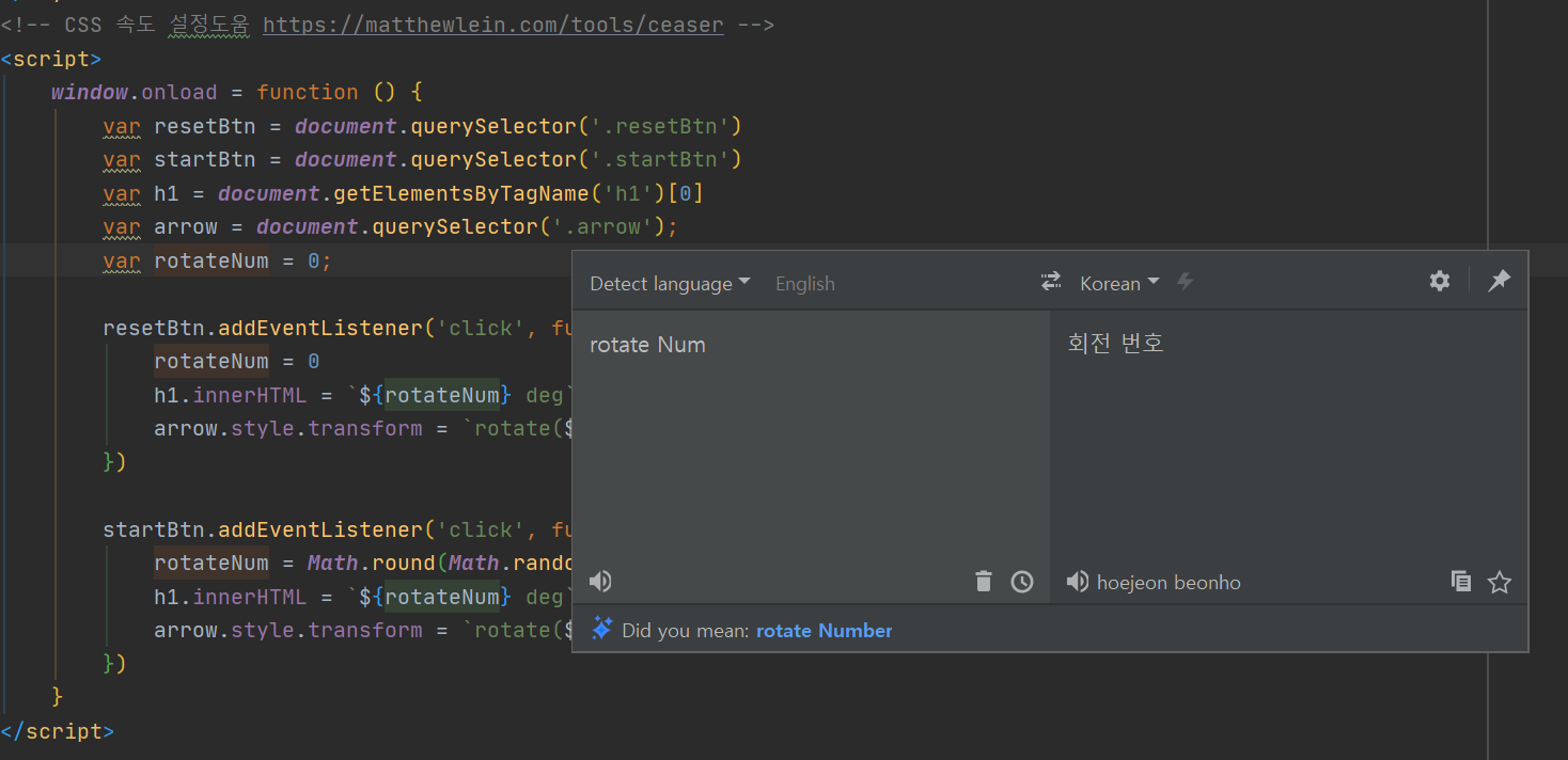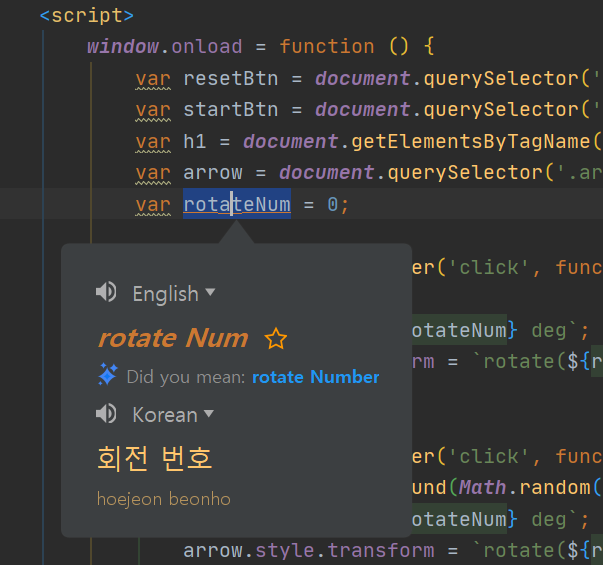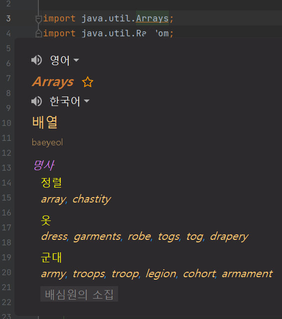 현재 위치한 단어의 번역을 목록으로 제공해준다